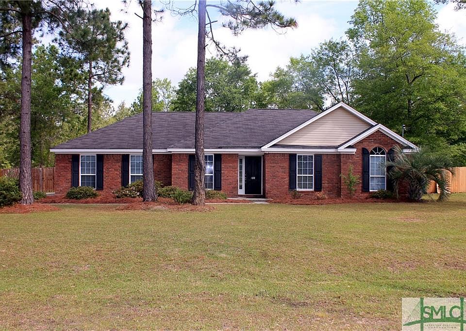 Brick 3 bed / 2 bath home recently renovated to include new paint and carpeting. Master bedroom has walk in closet and tray ceiling with fan. Kitchen appliances include refrigerator, stove and dishwasher. Separate dining room for formal dining and breakfast nook for cozy informal dining with a built in pantry. Separate laundry room with additional office area or play room. Side entry 2 car garage with built in work bench. A fenced large backyard with plenty of shade is perfect for entertaining. Home is also wired for a security system. Located in a quiet neighborhood within easy access to Hinesville, Statesboro, Savannah & Pooler.