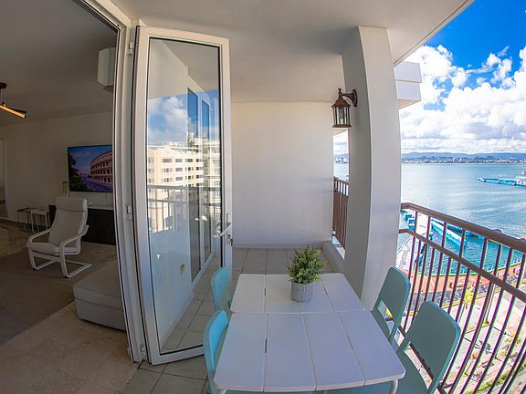 Exclusive Ocean-View Apartment in Old San Juan! Modern fully furnished two-bedroom, two-bathroom ocean-view apartment, designed for those who value location, security, privacy, convenience and a great ocean view. Across the street from post office, pharmacies, shops, cafes, restaurants, running trails, beach. Inside, enjoy elegant marble floors, usb and usb c outlets, Hurricane- and noise-proof doors and windows, spacious living areas and a private balcony, perfect for unwinding after a busy day. You will have concierge service for handling packages, deliveries, uber orders, 24/7 security, and convenient electric car chargers. Friendly and clean pets allowed. Full backup generator and water cistern to never worry about power or water service interruptions. Additional amenities as cleaning services can be included for extra fee. Open to receiving offers.
