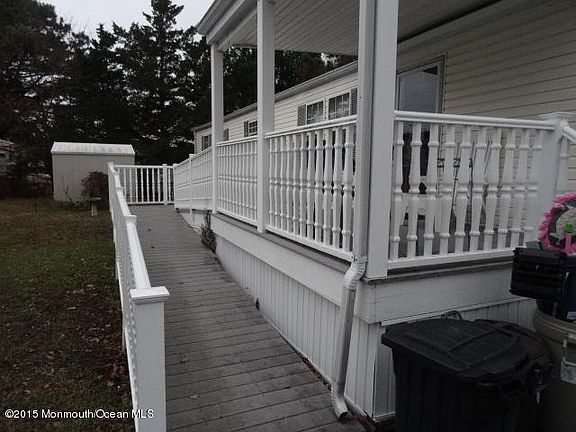 REDUCED! Nice manufactured home in a 55+ Community offers Living Room/Dining Room combo w/vaulted ceiling, Kitchen w/breakfast bar, 2 Bedrooms, 2 full Baths, & Laundry Room. Features incl Central Air, Full Appliance Pkg (Washer, Dryer, Elec Stove/Oven, Microwave, Refrig, Dishwasher), Ceiling Fans, Upgraded Kitchen Cabinetry w/Etched Glass Doors & home is handicapped ready. Exterior boasts a great covered trex deck w/handicapped ramp & staircase & storage shed. Low Monthly Association fee includes property taxes, water/sewer, trash removal & snow removal from the streets. Community has a Clubhouse + an In-Ground Pool w/picnic area. Centrally located apprx 5 miles to stores, medical facilities & restaurants and just 12 miles to the beach! Great for year round or a summer vacation getaway!