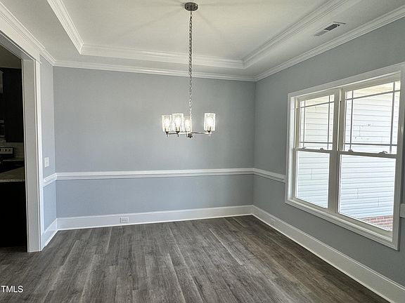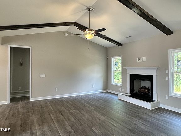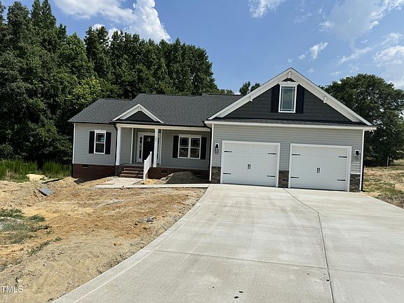 Welcome to your dream home in the charming town of Angier, just minutes away from Campbell University! This stunning ranch floor plan offers 3 bedrooms and 2 bathrooms, perfect for comfortable living and entertaining. Step inside to discover an open-concept living space featuring a cozy gas fireplace and beautiful wood beams. The spacious kitchen, complete with a breakfast nook, is ideal for morning gatherings, while the formal dining room provides a perfect setting for special occasions. Enjoy the convenience of a walk-in laundry room and retreat to the large master bedroom with a gorgeous ensuite, featuring a luxurious tile shower and a generous walk-in closet. Relax on the covered porches, overlooking the gorgeous large lot. This home offers the perfect blend of tranquility and modern features.