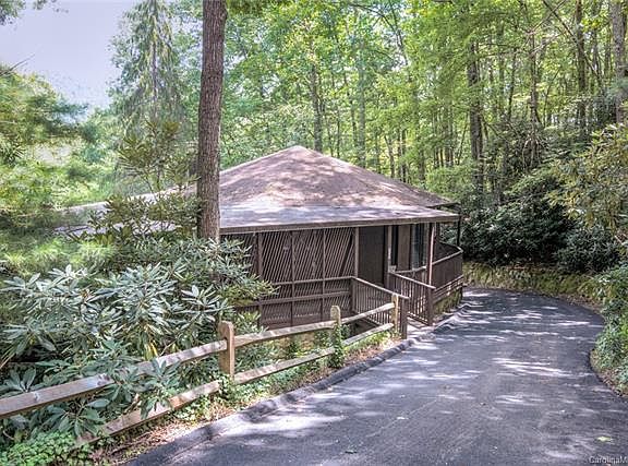 Located on a quiet dead-end street and minutes from Black Mountain, this rustic mountain Montreat cottage has forest and mountain views. This one-of-a-kind octagon house is a 4 bed, 2.5 bath home, an open concept living room, dining room, kitchen, and a family room with high ceilings. The outdoor entertaining space includes a beautiful pool among mature trees, a fire pit area, and covered barbeque area - all on .66 acres. The large porch provides room for outdoor living at its best. A tool shed, carport and circular driveway finish off this unique property. Buy it to live in year-round, as a summer home, or a long or short term rental property.