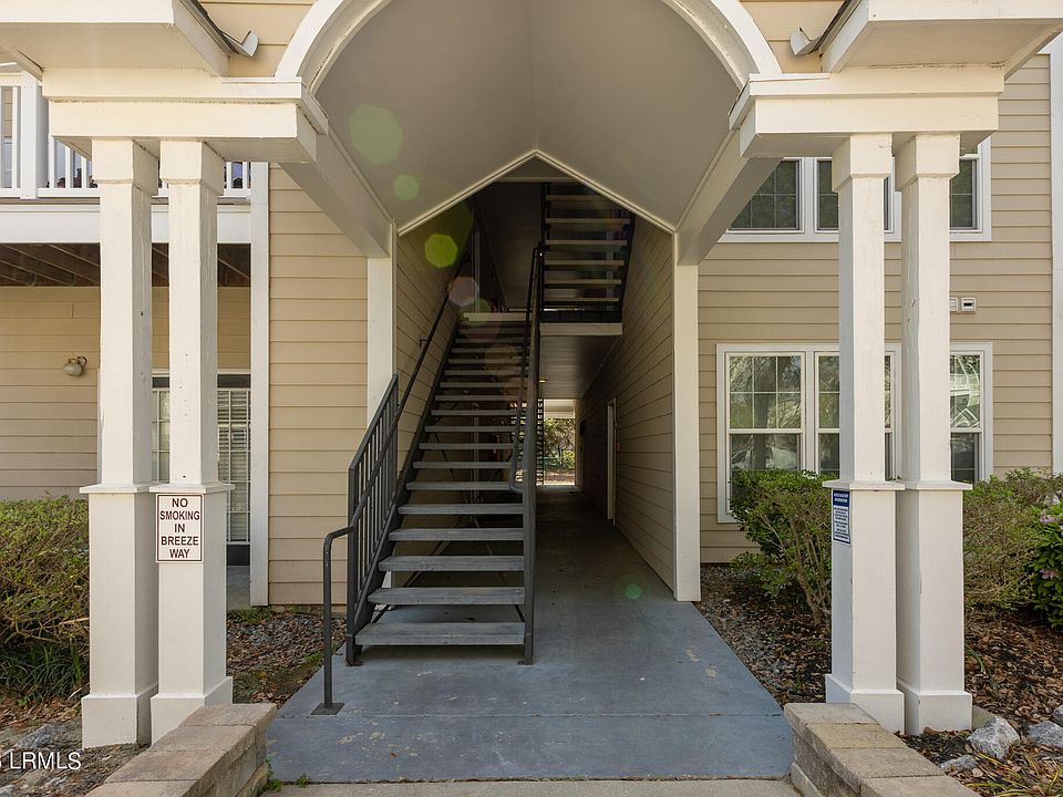 First floor suite in a quiet, gated community. The 1 bed/1 bath condo feels spacious with tall ceilings, and plenty of windows. Complete with in-unit laundry, this home has everything you need! The porch offers additional entertaining space to enjoy the low country breezes on ground level. Two covered and locked storage options with the connected porch storage and storage unit D1.