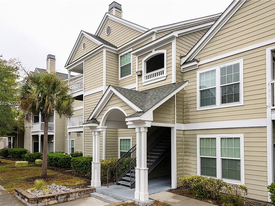 Rarely available and beautifully remodeled 3-bedroom, 2 full bath second floor unit, move in ready. Updated kitchen and eat in area over look your living room with working wood burning fireplace. Adjacent balcony is serene with wooded view. Beautiful vinyl plank floors, upgraded fixtures and so much more. New high end washer, dryer and new water heater. Great location in one of the prettiest communities in Bluffton. Pool and walking trails nearby.