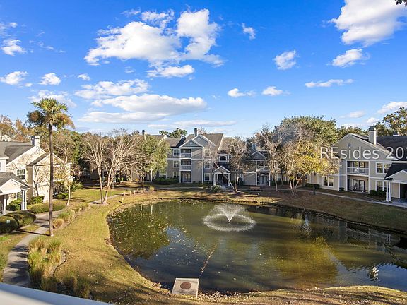 Beautifully Updated Condo! This freshly painted 2-bedroom, 2-bathroom condo features brand-new luxury vinyl flooring throughout. The modern kitchen showcases quartz countertops and stylish neutral finishes, perfectly complementing the light and bright open floor plan. Enjoy cozy evenings by the wood-burning fireplace or relax on your private balcony overlooking the tranquil lagoon. Located within a gated community offering walking paths, a sparkling pool, fitness center, and playground, this condo provides both comfort and convenience. Just minutes from shopping, dining, Historic Old Town Bluffton, and the area's best amenities.