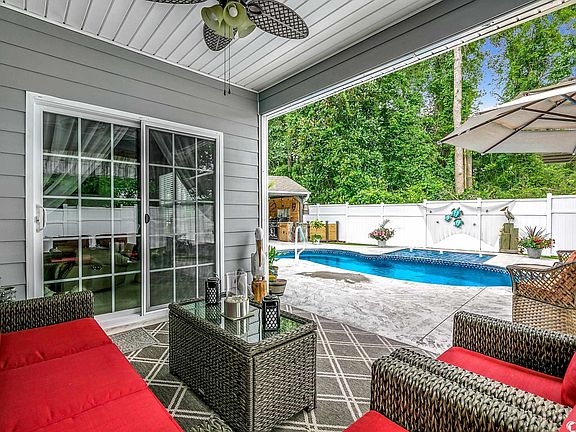 Welcome to 100 Kenzgar Dr, Myrtle Beach, SC 29588! This stunning property offers the perfect blend of luxurious indoor and outdoor living in a desirable gated community with a convenient path to the Intracoastal Waterway. Let's explore the amazing features of this home! Exterior: The backyard is a private oasis, featuring a fenced yard, a sparkling pool for refreshing dips on hot summer days, and a full outdoor kitchen equipped with multiple grills and a mini-fridge. Entertain family and friends with ease as you prepare delicious meals using the outdoor grill, while the cozy fireplace and fire pit create a warm ambiance for evening gatherings. Interior: Step inside to discover a beautifully designed interior with an emphasis on style and comfort. The kitchen boasts elegant granite countertops and modern stainless steel appliances, making it a dream for any home chef. The tile flooring throughout the wet areas not only adds sophistication but also provides durability and easy maintenance. The vaulted ceilings create a sense of spaciousness and grandeur, enhancing the overall appeal of the living spaces. The primary bathroom is a retreat in itself, featuring dual vanities, a luxurious tub, a separate shower, and tasteful tile accents. The primary bedroom showcases a tray ceiling, adding a touch of elegance to the space. Community: This home is located in a gated community, offering an extra level of security and privacy. Enjoy the convenience of a pathway that leads directly to the Intracoastal Waterway. Spend leisurely evenings strolling along the waterfront or engaging in water activities. Don't miss the opportunity to make this remarkable property your own. Experience the ultimate in comfort, style, and outdoor living at 100 Kenzgar Dr, Myrtle Beach, SC 29588. Schedule a showing today and prepare to be impressed!