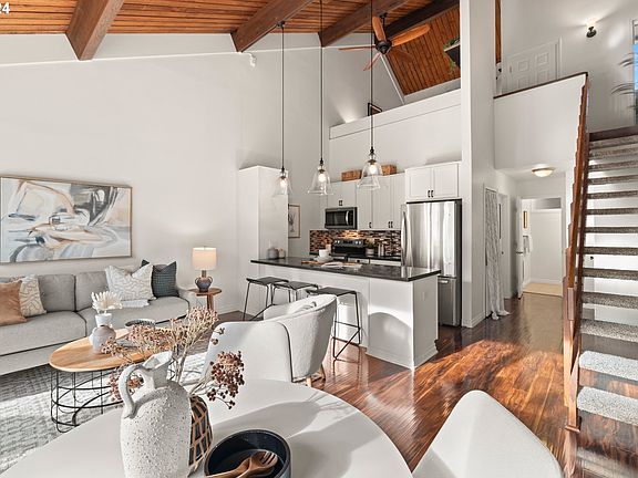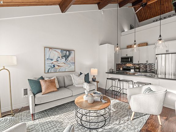 Welcome to this beautifully remodeled 2-bedroom, 1.5-bath condominium nestled in the Tanglewood Hills community of Lake Oswego. From its modern upgrades and vaulted, beamed ceilings, to its serene surroundings, this home is a true gem. Expansive windows flood the interior with natural light, creating a warm and inviting atmosphere. A private balcony extends your living space, offering the perfect retreat for relaxing and entertaining.The property recently underwent extensive exterior renovations, ensuring both beauty and durability. Updates include new siding, insulation, windows, sliders, composite decking, stairs, railings, and fresh exterior paint. The updated kitchen is a chef’s dream, complete with an island, stainless steel appliances, and open to the living space — ideal for both cooking and hosting. Other updates include fresh paint as well as new bathroom flooring. Designed with an open floor plan, this condo provides seamless flow between living spaces, catering to both comfort and contemporary living.Situated in the top-rated Lake Oswego School District, this home also offers exceptional community amenities. Cool off in the on-site Tanglewood Hills in-ground community swimming pool or enjoy year-round access to the nearby Mt. Park HOA Community Center. Here, members have exclusive access to a variety of premium amenities: indoor pools (waterslide included!), an indoor hot tub, a full sauna, a full workout and fitness center, indoor gym and basketball courts, year-round community events, and the cherished Mt. Park Playschool.This light-filled, beautifully updated condo combines modern style, unparalleled convenience and top-tier amenities. It’s move-in ready and waiting to welcome you home!