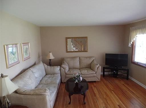 Well maintained & move-in condition! Hardwood floors, freshly painted interior-neutral decor, living rm w/bow window, 2 full renovated bathrooms, large eat-in kitchen with solid wood cabinetry and new floorcovering, finished basement, new front steps & paving stone walkway, custom deck overlooking a serene parklike yard. The finished basement features a large recreation room and there is a spacious laundy/utility area with ample storage. There is central air conditioning and a new hot water heater. The home is heated by gas fuel with a forced hot air heating system. The 200 ft. deep yard is fully fenced and there is a custom storage shed included. All within close proximity to shopping, schools and parks & recreation. Metropark train station to NYC and points South near bye. 4th Bedroom currently being used as a dining room by current owner.