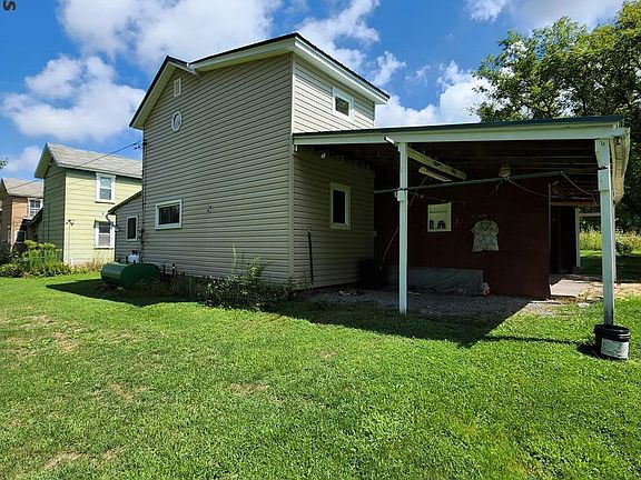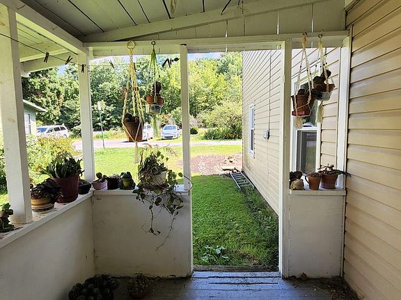 A 2 bedroom, 1.5 bath, 2 story sitting at the end of a quiet street! Many upgrades throughout, including a newer metal roof, insulated windows, siding and oil furnace! The first-floor bathroom is conveniently located off of the kitchen. Also off of the kitchen is an enclosed porch great for storage! Upstairs you'll find 3 large rooms. 2 bedrooms and one large open area. **Part of carport is on neighbor's property. Seller will be removing that portion and making it more of a covered patio area