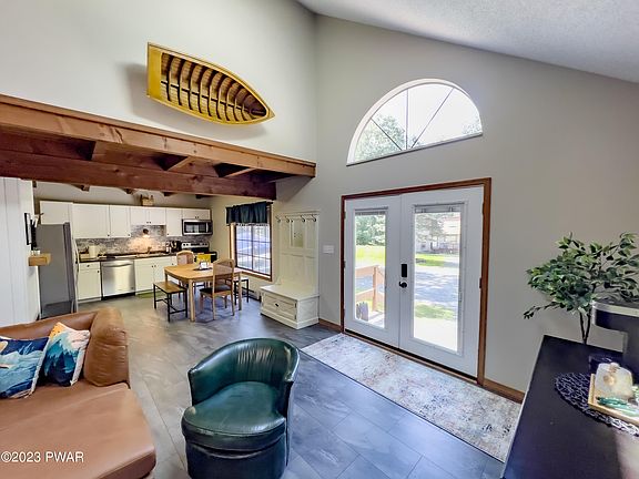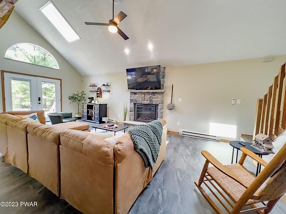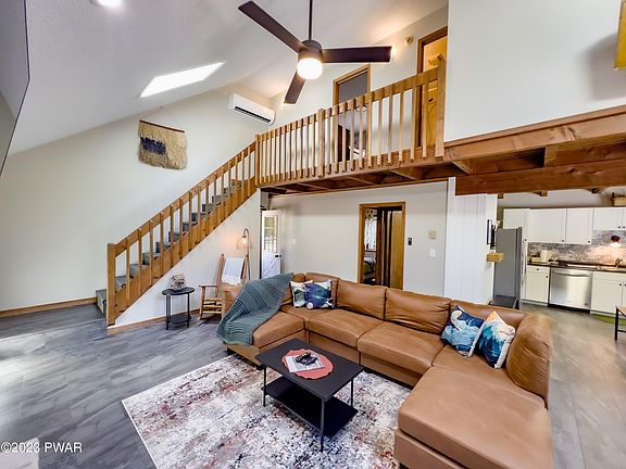 Looking for the perfect location for your family lake house? Well the search is over my friends! Take a short walk from your front porch, to the illustrious Lake Wallenpaupack. Gaze upon her majesty and enjoy endless aquatic fun as you power boat, fish and play to your heart's content! With a generously sized corner lot, you'll have ample parking for the whole crew! This meticulously and lovingly renovated home features an open floorpan with vaulted ceilings, 2 full baths, T&G flooring, brand new appliances and AC, a large master bedroom, and fully fenced in yard. Slow down on lake time and extend those weekends with family that never last long enough or Airbnb this lovely gem. Come see what makes Lake Wallenpaupack THE destination for summer Poconos fun!, Beds Description: 2+BED 2nd, Beds Description: 1Bed1st, Baths: 1 Bath Level 1, Baths: 1 Bath Level 2