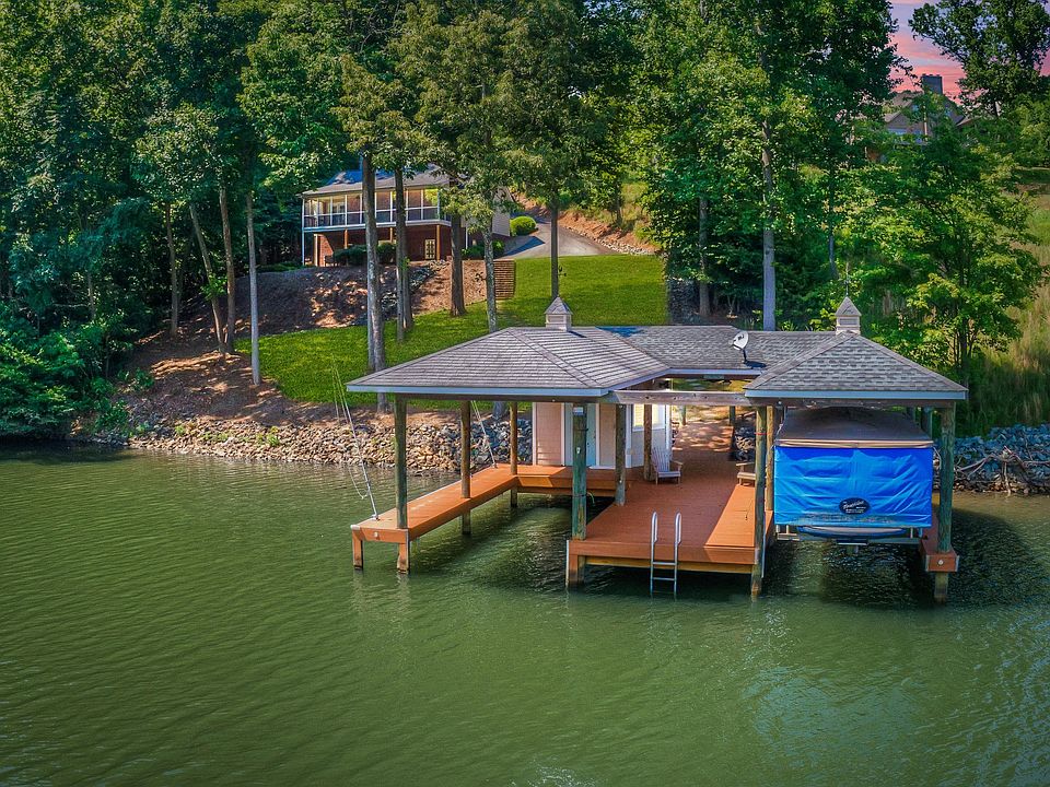 Everything about this lovely 3 Bedroom 3.5 BA lakefront home is JUST RIGHT, including it's ideal connection to the waterfront! This perfect lake getaway is located in the distinguished and quiet upscale Admiral's Landing community with marinas, restaurants, and shopping close by. All bedrooms in the home are Masters and face the lake, enjoying gorgeous water views any time of the day! Step outside onto the spacious screened porch, or sit a spell on the lower level covered patio, and immerse yourself in the beautiful outdoor scenery. Ready to get on to the water? The path to the lake is gently sloped and a short and easy walk from the home. When you're all done, park your boat in the covered boat slip that includes a lift. If you're searching for a home that is JUST the RIGHT SIZE and
