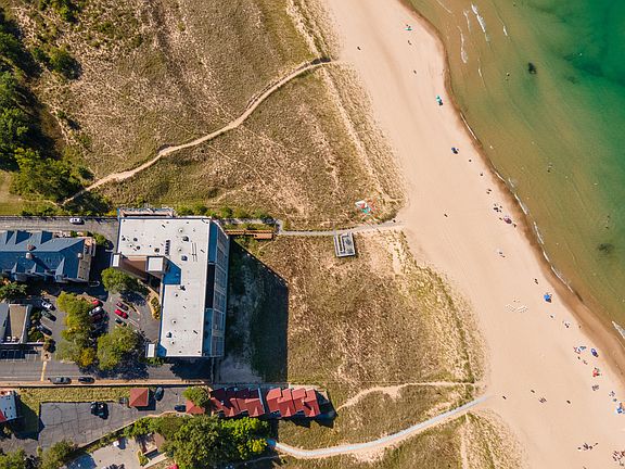 Lakefront Condo with Private Beach and Endless Views! This 3 Bed, 2 Bath Dunescape condo offers breathtaking views of the dune-grassed beaches and the spectacular Lake Michigan. Fully amenitized association with a private beach, updated indoor facility with pool, sauna, gym, and game room, all offering a resort-like living experience. This fully updated 1,447-square-foot condo is the embodiment of elegance--every detail curated for sophistication and comfort. An open concept layout creates a fresh, airy flow, seamlessly connecting living and dining spaces. Hardwood floors throughout living ares and kitchen. The beautiful kitchen features granite counters, tiled backsplash, and stainless appliances. Lavish main bedroom with lake views, balcony access, and a spa-inspired ensuite bathroom with oversized jacuzzi tub. Additional bedrooms are equally inviting providing ample space for guests. Step outdoors onto the expansive balcony--ideal for entertaining with mesmerizing lake scenes. Ground level indoor parking with storage locker and two elevators further the livability. Enhanced by a newer furnace, AC, patio doors, and brand new before close water heater, this is luxury living without compromise. Schedule your private tour and claim panoramic lakefront living at its finest.