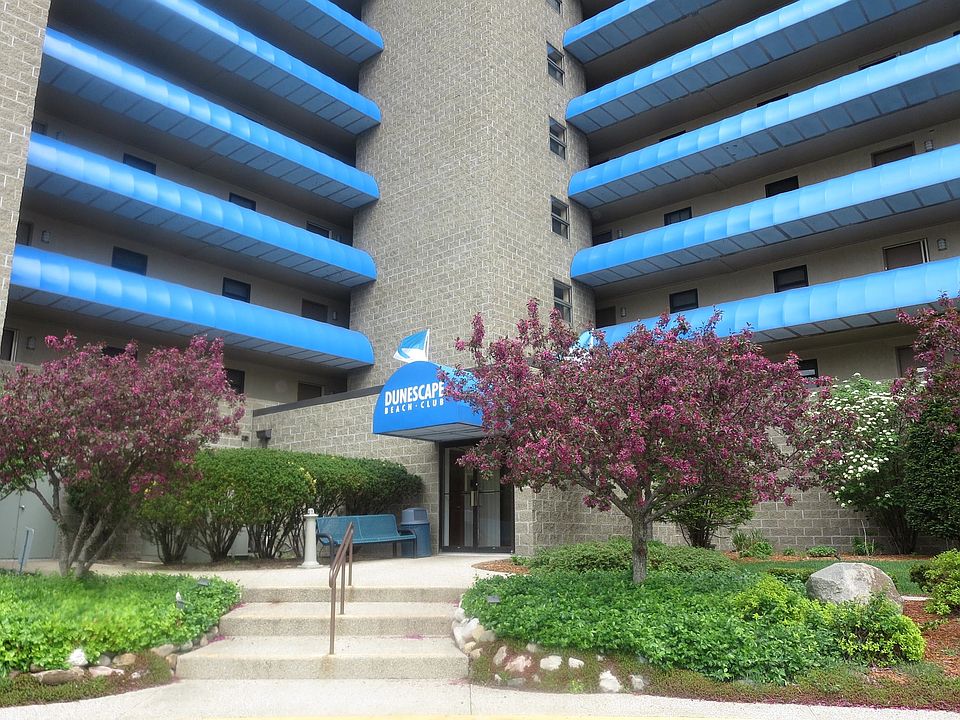 STUNNING LAKE VIEWS from the fourth floor of your very own condo in Dunescape Beach Club. This 2 bedroom, 2 bath condo is waiting for beach fun. Living room is combined with dining space and is open to the kitchen and breakfast bar seating. Main bedroom has jetted tub & separate shower. Kitchen has newer stainless steel appliances. The balcony can be accessed from the living room as well as the main bedroom. Private gated community with key card entry. There is a boardwalk to the beach. One garage space with locked storage area. Clubhouse has indoor pool, sauna and workout area. Summer is moments away, come buy today!