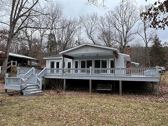Fantastic, panoramic views of lake Killarney from the deck and glassed in living room from this lake side ranch home, with 3 bedrooms, 3 baths, large living room with cozy, brick fireplace, fairly new deck on 2 sides, has kitchen with range and refrigerator, cenral air, and f/a heat, sky lights in all 3 baths, detached 2 car garage with opener, and has 2 large lots mostly level to Lake..Great location and great for year round living!...