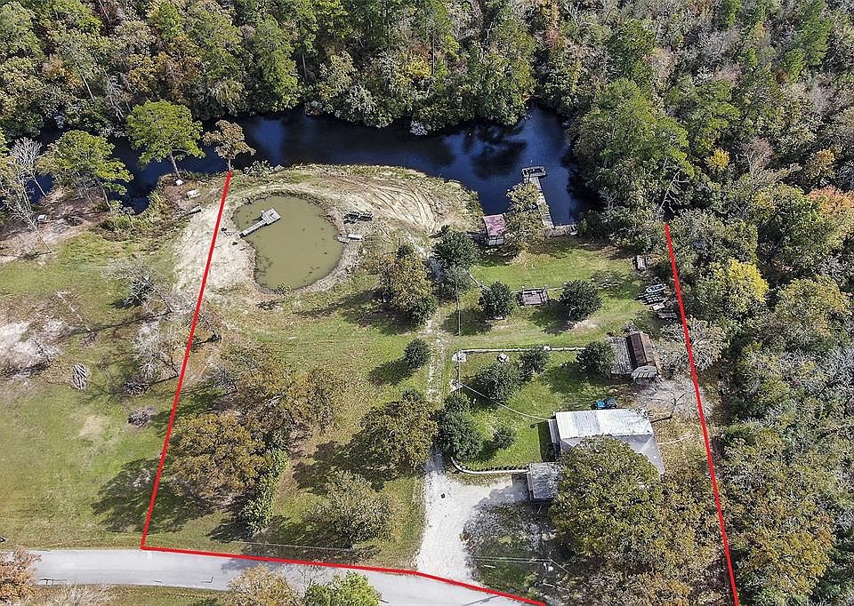 Spectacular getaway with rare amenities less than 20 minutes from Huntsville. A fisherman's dream, this 1.65-acre property has a private fishing lake, catfish pond, a fish house with a cleaning station, and a large fishing pier. An entertainer's dream as well, it features a concert stage, outdoor covered patio with a jacuzzi, large den with kitchen space, and over an acre of meticulously maintained green space. The large wooden storage shed has a workshop, is on a concrete foundation, and even has its own covered patio. The house has a recently updated kitchen with a custom wine bar, a spacious living area with a freestanding fireplace, and three cozy bedrooms. This property is perfect for a permanent residence for those wanting a private space or a vacation home that will keep you relaxed and entertained.
