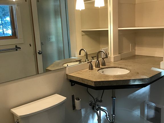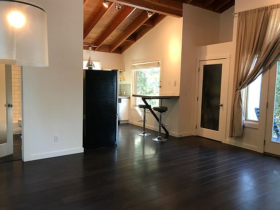 Architectural Masterpiece located on a wooded half acre lot. Two bedrooms, one bath and separate office space. Wood floors, wood burning fireplace, washer and dryer, and all kitchen appliances included. Tenant responsible for electricity. Month to month agreement. Owner pays for water and sewer. Tenant responsible for all other utilities.