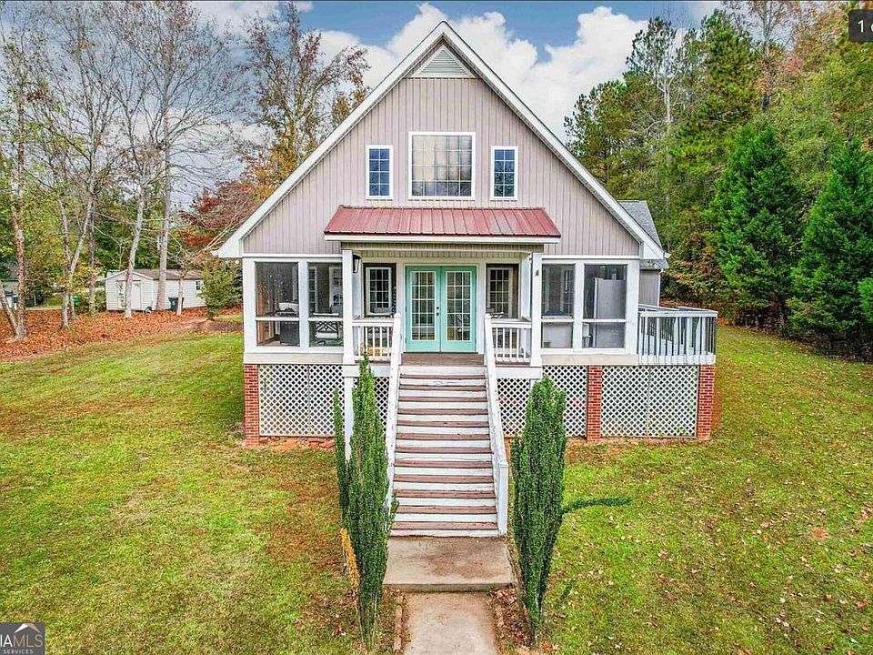 BEAUTIFUL Lake Sinclair Home on a deeded lot with GREAT water depth, GREAT views and GREAT lot! This home sits on a large, 1.29 acre lot that is super level, has a two car garage with a workshop and attic access. The home has 3 bedrooms, 3 bathrooms - 2 beds, 2 baths on the main (including the master ensuite). The kitchen, dining area and living area have vaulted ceilings, huge windows overlooking the lake and is an open concept, perfect for entertaining. A large sunroom is on the lakeside overlooking the water - this has an abundance of windows, vaulted ceilings with tongue and groove wood and plenty of space for lounging around after a day on the lake! The main bedroom is oversize with a HUGE closet and HUGE bathroom. Upstairs, there is a bedroom and bathroom and landing/loft that would be perfect for an office or extra sleeping room. Outside, there is a double stall boathouse, a sandy beach area, and 7-8 feet of water at the end of the dock. THIS IS IT! The perfect house, 15 minutes from downtown Milledgeville and at a great price. Call today and let's get you SOLD on Sinclair!