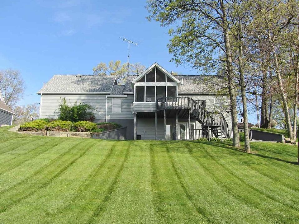 Totally redone inside and out! The exterior siding was updated and repainted. A new roof was added. New furnace, new water heater, all new flooring and interior paint. The kitchen has hardwood flooring, a pantry, new cabinetry, fixtures and a brand new stainless appliance package. The kitchen is open to the living room, so you can talk to guests while cooking. There are French doors that lead from the kitchen to the lakeside screen porch and open deck. There are also two bedrooms, a laundry room and a full bath on the main level. The upper level is one big bunk room with a half bath. The lower level is a family room with gas fireplace, a rec room area with wet bar, a den with closet and full bathroom. There is a sliding door that leads to the lakeside covered deck. You will also find a deck at the waterfront with the docks. If you have been in this home before, you need to schedule an appointment to see the changes!
