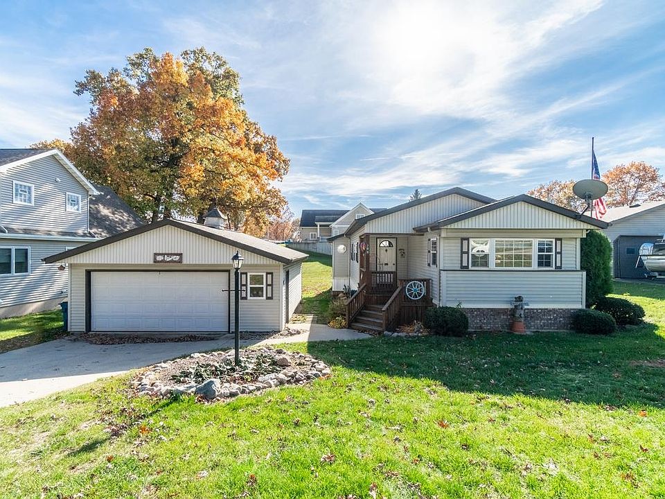 Lake James Estates is a sought after area on Lake James for the wonderful association access they maintain. Great beach, community pier system, boat launch, pavilion, parking, lakeside yard for games and more. This home is a singlewide manufactured home with an addition. Split bedroom floor plan with 3 bedrooms, 2 full bathrooms, an open concept living room-kitchen-dining area and a separate family room with pocket door that is currently used as a 4th bedroom. Kitchen appliances, washer and dryer are included. Luxury vinyl plank flooring throughout the main living area with carpet in the bedrooms. Includes the insulated detached 26x24 heated garage with storage room. This home does have a boat slip. Also available to purchase is Lot 9 with a 2nd insulated detached 30x40 heated garage with workbench for an additional $135,000. Lot 9 also has a boat slip. Available to the purchaser of the home first. Home must sell 1st.