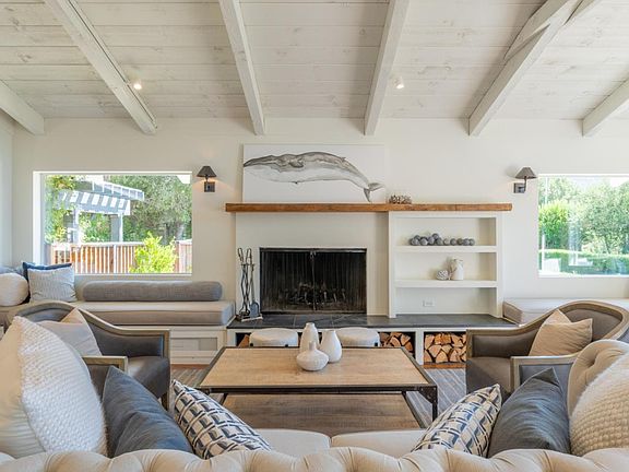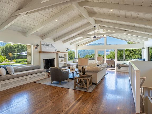 Silver Oaks, a turnkey modern farmhouse, nestled among majestic oaks on 7.7 acres, in the heart of Carmel Valley wine country. Serenely private, this unique country property is bathed in natural beauty, a panoramic setting with forever vistas from sunrise to sunset. This tranquil, escape property is graced with unobstructed Garland Park and Santa Lucia Mountain vistas, where soaring Hawks and clear starry nights are a few of the many splendors of the Carmel Valley lifestyle. Perfect as a main residence, or a superb vacation escape. This spacious home is light and bright, and has been recently remodeled, with great attention to detail to create a peaceful, intimately warm home. Mostly single level, this one-of-a-kind home has lots to offer with over 4,200+ sf of living space, featuring 6 bedrooms, 4 baths, two fireplaces, a stunning great room, kitchen, office/den/library, multiple entertainment decks, and swimming pool. There is an additional 1,345 sf detached building on the property that houses a two-car garage, which currently is set up as a game room, workshop area, peloton room, plus bonus storage spaces. The lower portion of the 7+ acre property features a private mile long walking and mountain bike trail, with two fire pit areas and picnic tables.