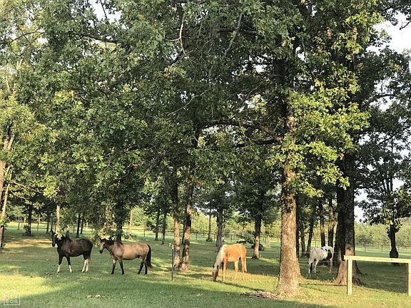 This beautiful estate in the rolling hills of the Ozarks is one you don't want to miss. It includes 4000+ sq ft home on 16 acres of land, horse barn, gazebo, small lake/pond and 2 out buildings. The horse barn (40X60) includes 5 stalls and a tack room. Relax on the wrap around porch of the beautiful 2 story cypress home. As you enter the home you will be impressed by the beautiful wood work and the grand entry and barrel ceiling. Upstairs you will love the master suite with his/her sinks, private water closet, fireplace, make up area, his/her cedar walk-in closets, sitting room and walk out balcony to over the pond and spot various wild life. It also includes three additional nice size bedrooms with great views of the property and a bathroom. The Kitchen boasts a separate ice maker, desk area, beer keg, large butler's pantry pull out cabinetry, and slate flooring. The great room features a rock fireplace and includes a huge leather reclining sectional sofa and beautiful wood flooring. The main level also includes a pool table/game room and flat screen TV, large dining room, huge office, half bath and breakfast room. If you're looking for a peaceful retreat with plenty of room to enjoy wildlife and somewhere to ride horses this one is for you.