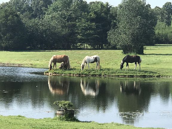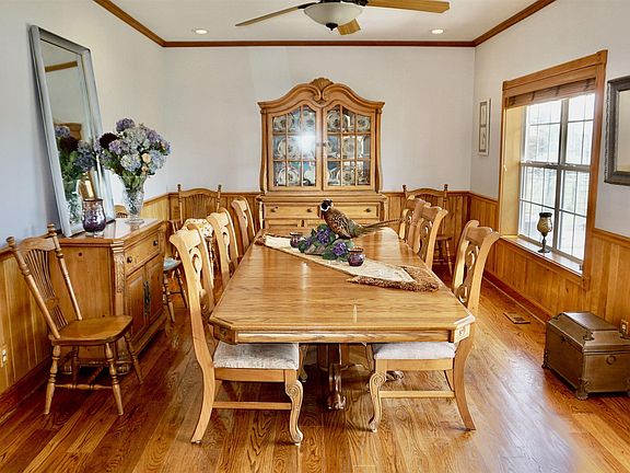 Beautiful estate with a 4000 sqft home, 16+ acres of land, horse barn, gazebo, small pond and 2 out buildings. 4 bedrooms, 2.5 baths, master suite with his/her sinks, walk-in closets, sitting room, and jet tub. Kitchen has desk area, beer keg, large butler's pantry and pull out cabinetry. The great room features a rock fireplace, wood flooring, and leather sectional. Main level also has a game room with pool table. Wrap around porch and beautiful views.