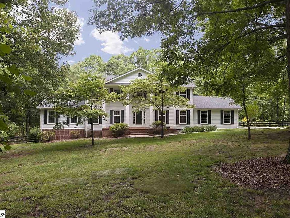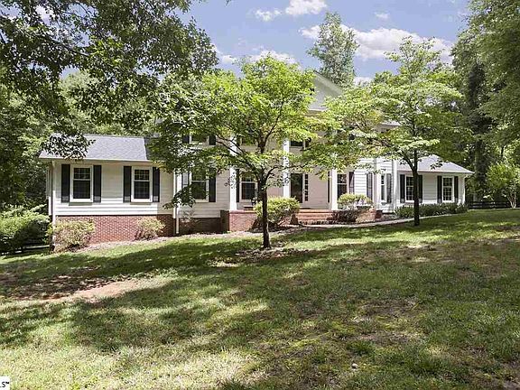 Beautifully updated home on just over three acres with surprisingly close proximity to I385, Woodruff Road and the Five Forks area! You will feel like you are living in the country but it's just minutes to modern conveniences! Southern charm greets you as you approach this stately home with the rocking chair front porch accented with large columns. Fabulous updates including granite kitchen with tile backsplash, stainless appliances. Updated baths with tile tub surrounds and faucets, updated ceiling fans and hardware throughout the main floor and upstairs! Two sets of double french doors create an easy flow from the living areas to the spacious covered porch boasting a wood ceiling overlooking your own private playground! You will love entertaining family and friends with the private inground pool, completed by a covered pergola for the shade lovers. The back yard boasts fenced expansive areas for gardening, plenty of room for any use! Tons of gleaming hardwood flooring, two master bedroom suites, one on the main level and one upstairs! All rooms are spacious with an abundance of closet space. The basement features a kitchenette, and and over sized flex spaces to create the space you need to make it your own, the kitchenette in the basement makes it a perfect in-law or teen suite. The basement also has a media room for watching the 'big screen'! B Dry transferable warranty. The water system has a ph adjustment, UV sterlizer and filters on water entering the house. This home has a pride of ownership rarely found! This is a wonderful opportunity to live on your own 3 acre estate with the quiet and privacy of 'living in the country' and have the modern conveniences of dining and shopping just minutes away! Courthouse records incorrectly reflects 6% tax rate