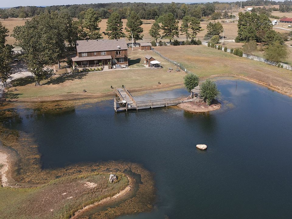 Lawrence County Horse Property with Country Home For Sale in Northern Arkansas This remarkable horse farm for sale features a 4000+ sq.ft home on 16 acres with a 5 stall horse barn and a mini lake. Located in the country in the rolling hills in the Ozarks of Arkansas. Enjoy this fabulous 2 story home that boasts 4-5 bedrooms, 2 ½ baths & lots of amenities inside of this 4000 sq.ft cypress home. One of the best features of the home is the covered porches on 3 sides of the home, one of which looks out over the mini lake. House For Sale in Ravenden, AR The main floor consists of a huge living room that includes reclining theater seats & a rock fireplace. The kitchen features oak cabinets plus refrigerator, dishwasher, ice maker & a range/oven with built in microwave. It includes an extra large butler's pantry. A formal dining room in between the living room & kitchen is sizable enough for a large dining table seating 10 people. There is also an informal dining room for smaller gatherings. A game room complete with TV & pool table is perfect for get together's! The second story houses 4 bedrooms that includes the master suite. The master bedroom has picture windows, his/hers walk-in cedar lined closets & a den/alcove that would also make a great nursery. The master bathroom is very spacious and is almost as big as the bedroom. It boasts slate floors,a Jacuzzi tub & fireplace. There is a balcony off the master suite that overlooks the small lake on the property. 3 other bedrooms & a guest bath are also on the second level. Amenities are endless in this home that is great for entertaining! It has covered front porches on 3 sides of the home, hardwood floors, beer keg station with new ice maker, an office, grand foyer with Barrel Ceiling & so much more! Home with Land For Sale in Lawrence County, AR This Arkansas equestrian estate for sale in Lawrence County Arkansas offers 16 acres and makes a beautiful horse farm! A 40x60 metal horse barn is included that has 5 stalls, a tack room, a shoeing area plus water & power. The acreage is mostly open with scattered trees & is a haven for horses. The property is all fenced with a combination of steel pipe fencing & privacy fencing around the house. The mini lake completes this property and provides amazing views from many rooms in the home plus the porch. The lake also includes a gazebo, a small wood deck & a diving deck.