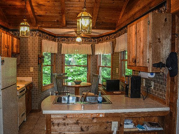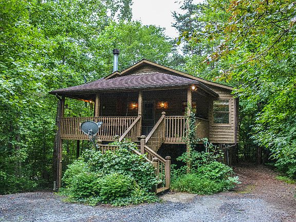 *JUST REDUCED* Charming 2 bedroom 2 bath cabin in "The Last Resort". Large indoor hot tub, towering stone fireplace, bedroom and bath on each level with seprate entrance, dining area with bay windows, tons of storage, circular driveway, and to top it all a private location. This cabin would make the perfect rental investment!