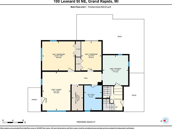 The upper unit boasts 2 beds, 1 bath, over 650 sq feet and storage in the basement. New flooring, new carpet, painting and fridge! There are both interior and exterior stairs that lead to this unit which makes living through Michigan winter's a breeze.