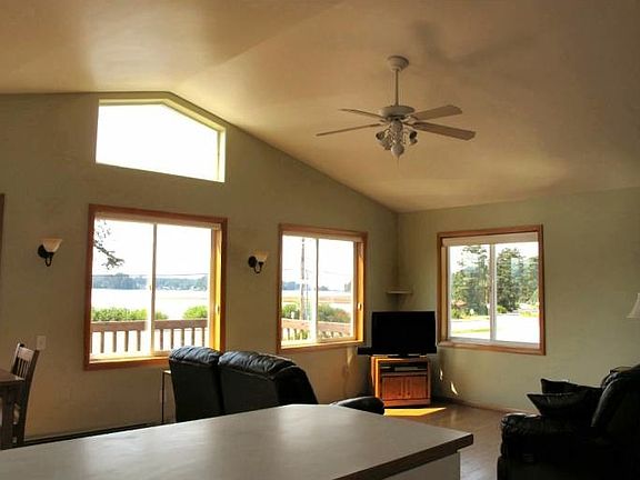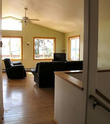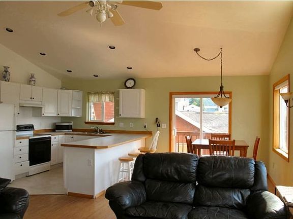 This home is located in a newer subdivision a short distance from downtown. It boasts an open floor plan (kitchen/living/dining) and a wraparound deck - all great places to enjoy the water and mountain views! There are 2 bedrooms and 1 bath on the main level. On the lower level, there is an additional bedroom, a bonus room that could be a den or study, and a laundry/bathroom. Garage parking for 2 cars plus room for extra storage. The lot has plenty of room to park a third car or a boat. The side lawn has a nice fence and comes with a shed and a sandbox!