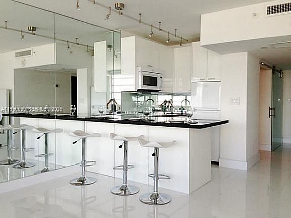 Gorgeous totally renovated all white jr. 1 bedroom. White glass floors, platform queen size bed, futon sofa bed, open kitchen with granit counter top, 2 flat screen TVs, balcony with ocean view, open spacious bathroom with shower and walk in closet. This is an all amenity building including free valet parking, huge ocean view infinity pool, ocean view gym and 24-h security. Best location in SoBe where Lincoln Rd meets the ocean.