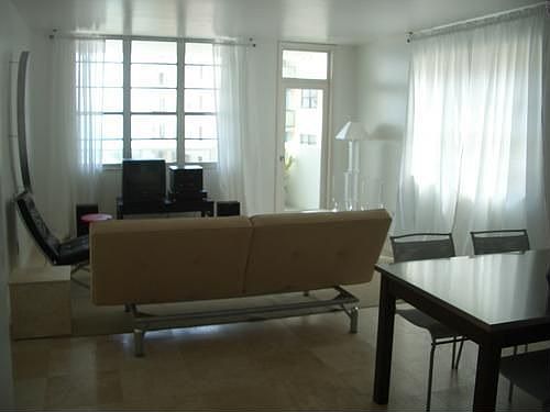 Very bright 1 bed/1.5 bath corner unit w/ spacious 850sqft floorplan. The Decoplage is a luxury building in center of SoBe on Lincoln Rd & the ocean. Unit is in good condition, newly furnished & freshly painted with new flat screen TV. Large, open balcony has Collins Ave view. Amazing pool area & gym recently renovated. Electric, cable, parking, water & wireless internet included with rent! Can be rented yearly or seasonally available now. Type full address into YouTube to take the HD virtual tour.