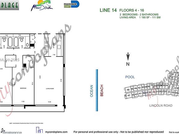 - Total interior livable area: 1,190 sqft