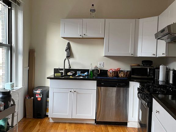 Come see this huge aprartment in Allston. This unit was recently renovated and features 3 huge bedrooms and a decent sized bath. It also has hardwoodfloors, a renovated kitchen with stainlesssteel applances. (Dishwasher included). -Students are welcome. -Street parking available. - Close to public transportation. - Laundry locted in the building. Schedule a showing today! The first and last month's rent is due upon signing of the lease. Heat and hot water included in the price of the rent.