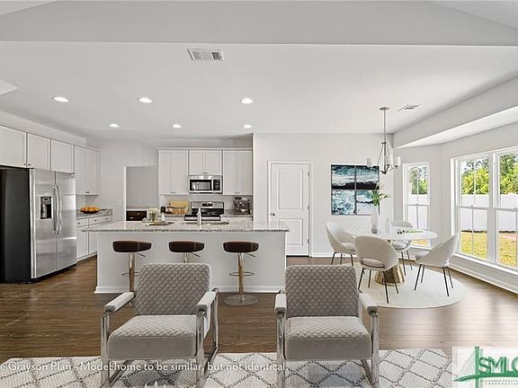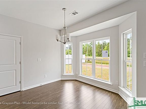 The Grayson plan by Smith Family Homes (171RL) is under construction in Ramsey Landing. Late 2022 estimated completion. Over half an acre wooded homesite! It has 2,447 sqft with 5 bedrooms and 3 baths with side entry garage. Gorgeous laminated throughout the common areas, tiled floors in the bathrooms and laundry room, with carpet in the bedrooms. Granite countertops and stainless-steel appliances (dishwasher, microwave, and oven.) Includes a beautiful tiled shower in the primary bedroom, and is a covered porch and 3 zones of irrigation. Model home images shown, to be similar but not identical.