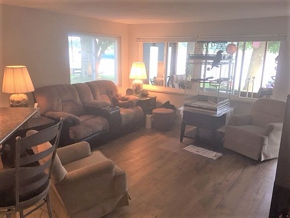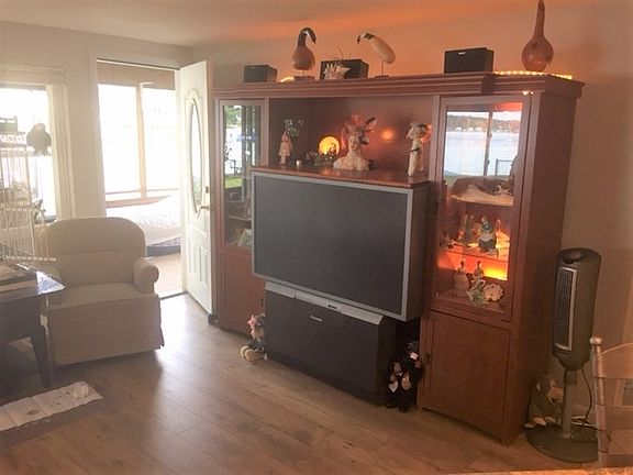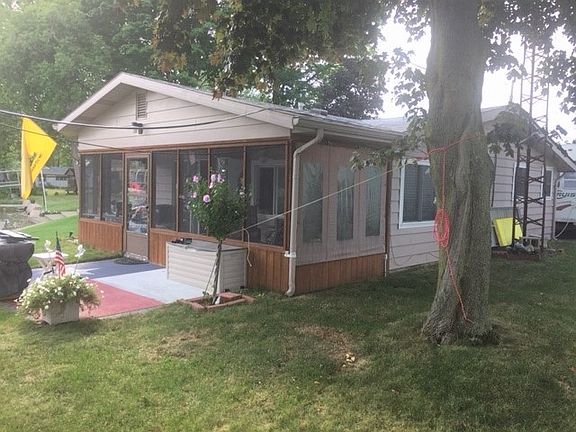 75 feet of frontage with sandy beach! Move-in ready 2 bedroom home with fantastic views of Lake George. Home features an open concept living/kitchen area, large enclosed porch with great lake views, and attached one car garage with half bath. The central air conditioning unit, natural gas furnace, and concrete seawall were all replaced in 2016. Vinyl windows replaced approximately 10 years ago. The home is being sold furnished and the second refrigerator in garage is also included.
