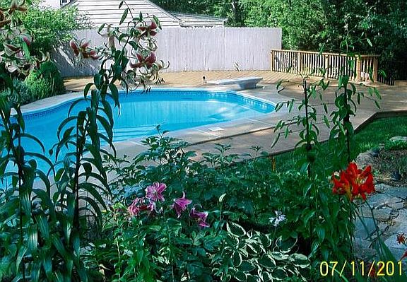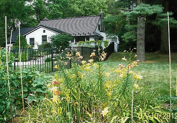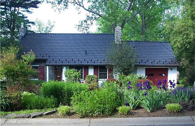 Story book stone & stucco garden cottage with pool on a well landscaped, cultivated lot across from a park in the centrally located yet private community of Deerhurst. Handsome, high end aluminum metal roof with heat resistant coating sets the tone and adds to the energy efficient aspects of this unusual and rare offering. Zoned electric baseboard heat with a gas Mendota D-40 fireplace insert with heat output up to 40,000 BTUH. Replacement windows throughout with new Energy Star picture windows in the dining room. Rinnai gas tankless water heater. Eco-friendly engineered wood floors that are more durable & can be resurfaced in living room, dining room, office and 2nd bedroom. Bright, stylish kitchen has butcher block, Viking stove and Viking hood, radiant warm wire in tile floor plus doors to garage area and deck and terrace. Swift inground Lake Style pool has been well maintained with all records available. Upstairs family room could be used as 3rd bedroom as adjacent laundry has closet space and there is a nearby 2nd full bath. This cozy yet open, versatile and compact home offers a unique and private haven with good light and many updates. But it's all about the outside, the gardening and relaxing and entertaining around the gorgeous pool.