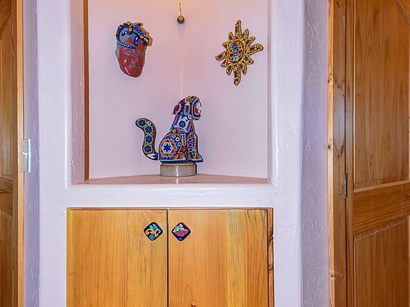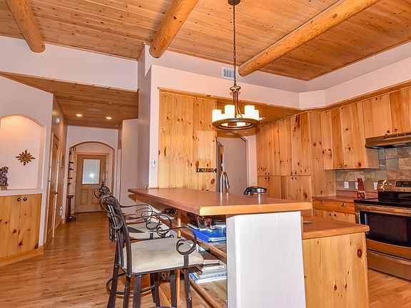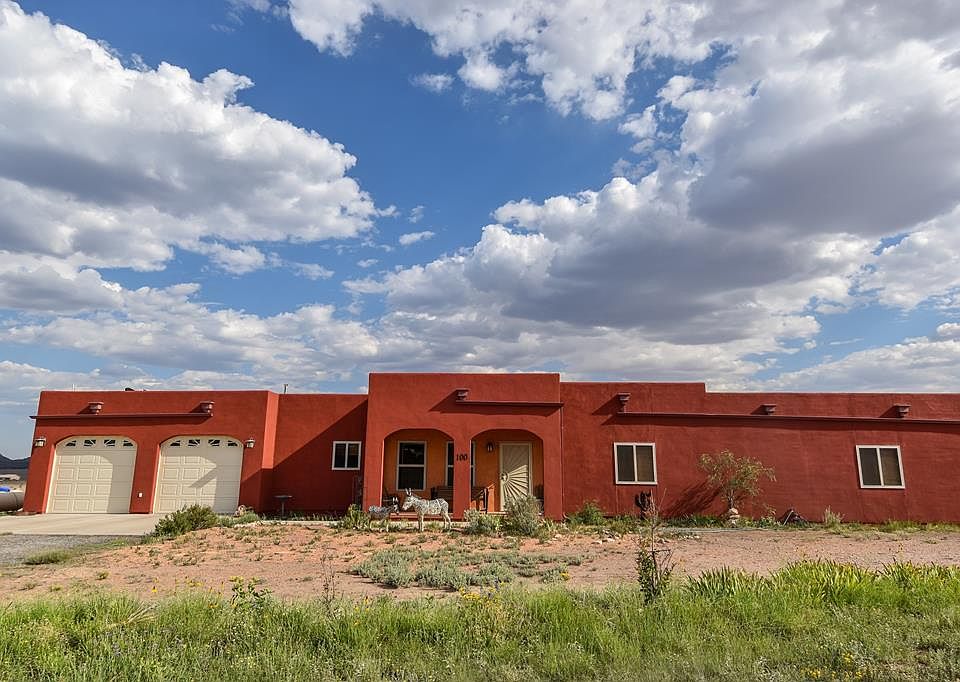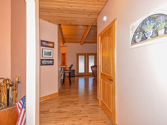 Picture yourself on the front or back porch of this spacious home with mountain views in every direction and coveys of quail wandering by every day. Built by Martini Construction in 2014, the Santa Fe style 2,427+/-sf open plan home on 2.8+/- acres has 4 bedrooms/3 baths and attached over-sized 2-car garage with separate shop. White pine cabinetry, ceilings, & vigas, oak wood floors & solid wood doors. Wood burning stove. Large dine-in kitchen, formal dining room & laundry room with hobby space.
