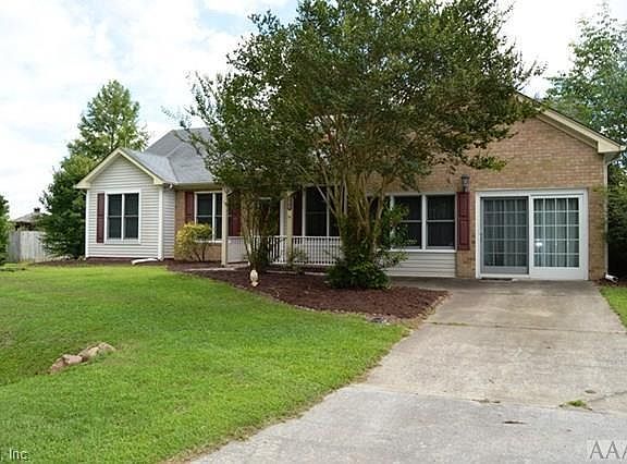 Ranch style home in the heart of Moyock offering Foyer, Formal Living Room, Eat in Kitchen, Formal Dining Room, Great Room w/ Propane Fireplace, Master Bedroom w/ Master Bathroom including Stand Alone Shower, Vanity and Soaking Tub, 2 Additional Spacious Bedrooms, Hallway Bathroom w/ Newer Tile Floors, Den/Office w/ Hardwood Floors, Sliding Glass Doors and Built in Desk, Covered Patio, Sheds, Gazebo and Detached Garage including stairs to a Room for Storage.