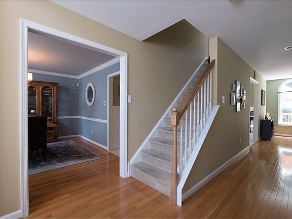 This classic center hall Colonial features distinctive architectural details that create a stunning first impression. A large, beautifully manicured front yard and a lush, wooded backdrop set the tone for what?s to come. This home is visually striking, with unique molding, a center peak roofline, keystone window banding and dark contrasting shutters. Step inside to be greeted by a 2-story foyer, a wide hallway, even wider doorways and enticing spaces in every direction. No detail has been overlooked. You?ll find baseboard trim, crown molding, wainscoting and hardwood floors at every turn. French doors lead to a bright, spacious formal living room on one side, with a tasteful, sophisticated formal dining room on the other. An immaculate kitchen, full of personality, features dark espresso cabinets, a luxurious stone tile backsplash, granite counters, ceramic tile flooring and stainless steel appliances. This welcoming space makes for an inviting gathering area with a lovely breakfast room and a large slider that opens onto the back deck. The family room features a wood burning fireplace, distinctive round-topped windows and plenty of space for entertaining or quiet relaxation. Upstairs, you?ll find a lovely master bedroom suite with soothing colors and neutral carpeting. This relaxing space will help you forget about the cares of the day with an amazing walk-in closet and a large en suite bath with a soaking tub, stall shower, and his & hers sinks. Three additional bedrooms, all with ceiling fans and plenty of natural light, share a spacious hall bath. The outdoor spaces this home offers are just as alluring. In addition to the attractive front yard, the backyard creates an inviting oasis. Bask on the deck which overlooks a large back lawn and mature tree growth at every turn, creating an enticingly secluded feel. Beautifully maintained, this home has a new roof, siding, gutters & downspouts as well as a newer HVAC system, and the full unfinished basement offers excellent storage opportunities. Make your appointment today!