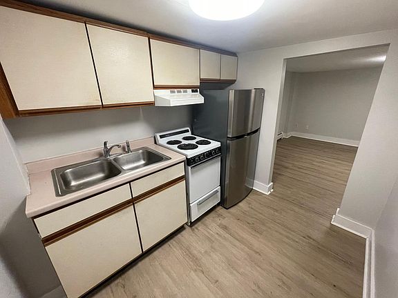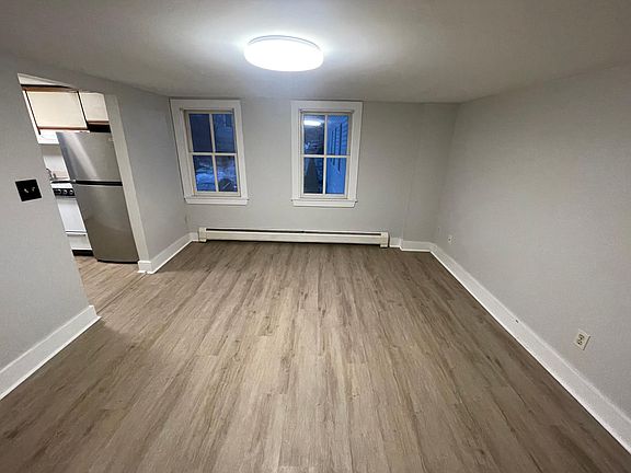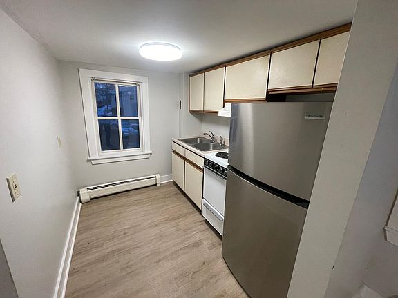 Located in the heart of downtown. 2nd floor apartment that just had new flooring installed. New stainless steel range and vanity to be installed on 2/18. Heat, hot water, and water/sewer is included. Tenant just pays for electricity. One off street parking spot. Coin operated washer/dryer in building. Dumpster onsite so tenants do not have to buy town trash bags. Pets allowed with fee.