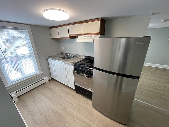Located in the heart of downtown. 2nd floor apartment that just had new flooring installed. Heat, hot water, and water/sewer is included. Tenant just pays for electricity. One off street parking spot. Coin operated washer/dryer in building. Dumpster onsite so tenants do not have to buy town trash bags. Pets allowed with fee.