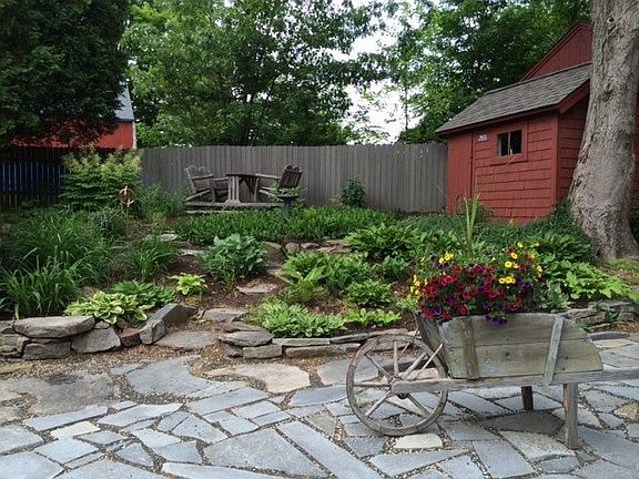 This 1750 center chimney, period home has been carefully maintained and decorated, paying particular attention to its period as well as some contemporary touches. It has a gourmet kitchen, a windowed great room/dining room, a living room with a beehive oven & period fireplace, a first floor bedroom with a fireplace, & a full bath. A walled terrace with an entertainment center offers great outdoor living for both day & evening. The 2nd floor has an efficiency kitchen, a full bath, one bedroom and a flex room. Off the efficiency kitchen is a screened & glass porch as well as a deck. Both levels have great floors & designer detail. An ell with a covered porch extends from the main house. It houses 2 one BR apartments, totally appointed with contemporary flair. Each apt. has a terrace, and one has a heated 3-season sun porch. Outbuildings include a small potting shed, a full size storage shed, and a 2 and a half car garage. An asphalt driveway leads from Old Route 6 #1 to the house & the garage & provides parking for at least 6 cars. The driveway extends alongside & around the back of the garage. The property's charm & serenity are enhanced by the well maintained & designed gardens & grounds. All this is on Main Street North in Woodbury within walking distance to restaurants, churches, groceries, a local pharmacy & the village green