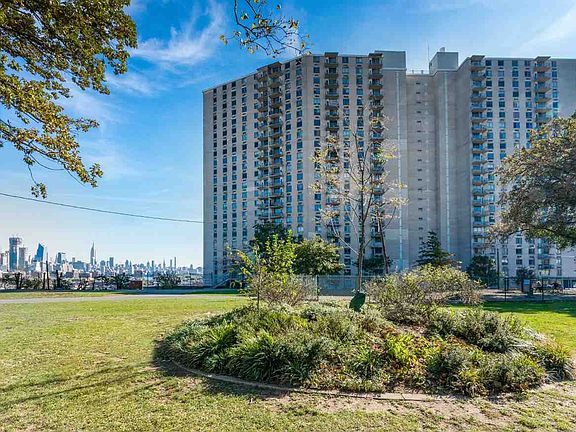 Nestled on the border of Hoboken, Union City, and Jersey City. This Union City high-rise 24 hours doorman building features a pool, on-site parking, laundry, gym, daycare, deli,dry cleaner, game-room, and package pickup room. The ground floor unit has a semi-private entrance that opens up to the patio garden and pool / sun deck and views of southern Manhattan & downtown Jersey City. The breathtaking views of Manhattan from the sun deck will entertain all as this 2 BR 1053sq ft unit has ample closet space including a giant walk in closet in the master BR. Updated kitchen and bath renovations allow this property to be move-in ready from day one with the ease of central A/C & heating in each room. Last but not least commuting and shopping is a breeze with a weekday morning shuttle bus to the PATH station, in additional to multiple bus routes less than a minute away. Additional options include the NJ Transit Light Rail and Hoboken trolley service 500ft away.