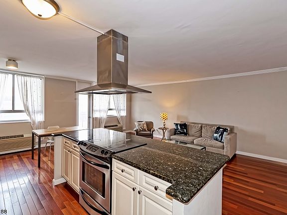 Awesome, immaculate 1 bedroom w/balcony at The Doric. You will love the hardwood floors throughout, open floor plan, and the updated kitchen with beautiful granite counters and stainless appliances. All this and 24 hr security desk, community room, convenience store, and a pool area that overlooks the NYC skyline. Pet friendly and convenient also. Monthly fee is $826 and includes taxes, heat, water, electric, hot water, and air conditioning. This is a co-op.