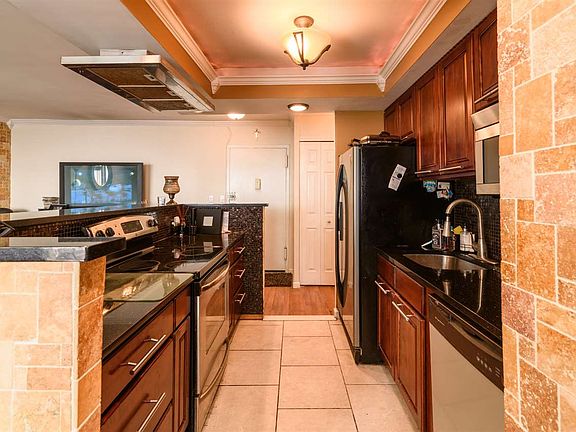 DIRECT FULL NYC VIEWS FROM ALL ROOMS!!! BEAUTIFUL TUSCAN STYLE HOME, FULLY RENOVATED, KITCHEN HAS BLACK GALAXY GRANITE COUNTER TOPS, SS APPLIANCES, ENTERTAINERS DELIGHT COMPLETE WITH WINE FRIG. ABUNDANT COUNTER SPACE. OPEN KITCHEN DESIGN. STYLISH TILED BATHS WITH VESSEL SINK AND SLATE TILES. HARDWOOD FLOORS. BALCONY OFF LIVING ROOM. FULL SERVICE BLG WITH 24 HOUR CONCIERGE, POOL, GYM AND PARKING FOR FEE. YOU WILL WANT TO MAKE THIS UNIT YOUR HOME!! OPEN HOUSE JUNE 4TH 1:00-3:00PM