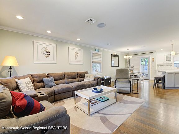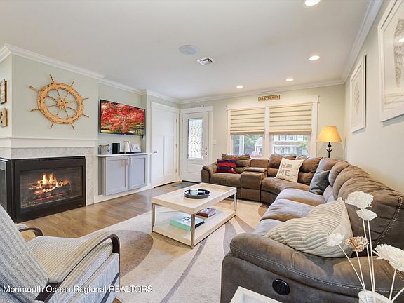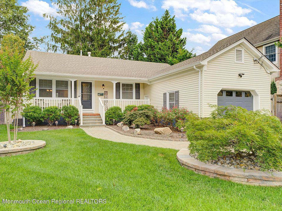 Nestled in a serene Manasquan neighborhood, this 3-bedroom, 2-full bathroom ranch exemplifies modern living with a touch of elegance. From the moment one sets eyes on this residence, its striking curb appeal is undeniable. Beautifully landscaped gardens, meticulously maintained lawn, a doublewide paver driveway and walkway, a one-car garage, and the charming covered front porch welcome you home.