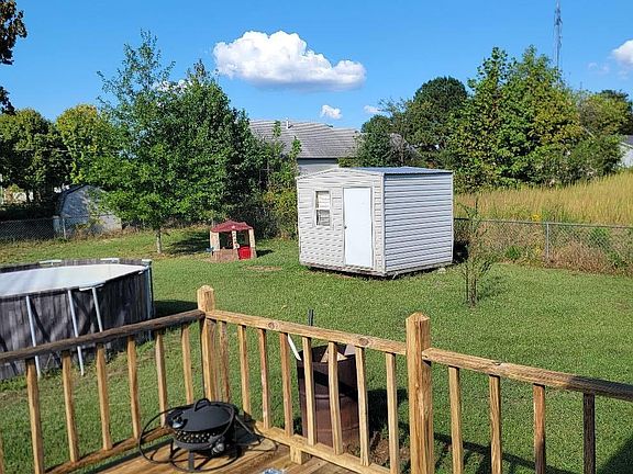 Detached carportEat in kitchenBreakfast nookPrivate master suiteDeck on the backStorage buildingLarge laundry