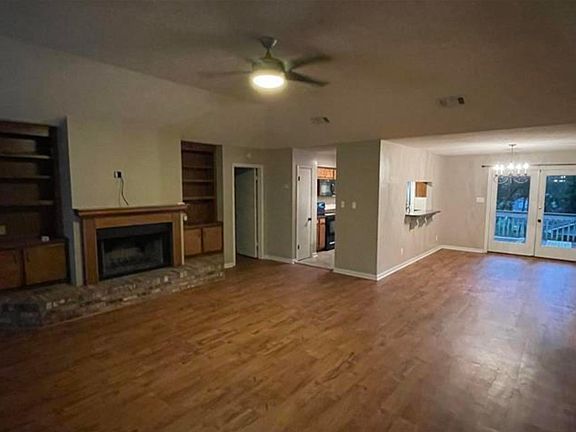 Discover this charming Daphne home in Lake Forest Subdivision! Featuring a split bedroom floorplan and open-concept living area, this home offers comfort and convenience. The living room features a cozy woodburning fireplace flanked by built-in bookcases, perfect for displaying your favorite décor. Enjoy LVP and tile flooring throughout, a galley kitchen, and a large back deck ideal for relaxing or entertaining. The primary bedroom includes two closets, and there's covered two-car parking under the home. Enjoy all the Lake Forest amenities-pools, golf, tennis, and more!Downstairs, you'll find covered two-car parking under the home, plus room for outdoor storage or workshop potential. Sold As-Is, Where-Is. Seller holds an inactive Real Estate License in Alabama. Buyer to verify all information during due diligence.
