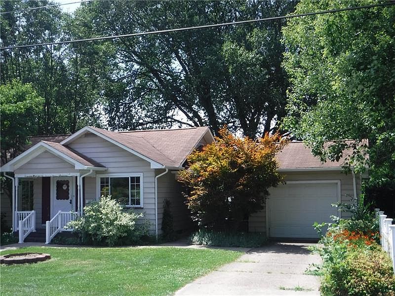 Great corner lot in Zelienople, breeze way and single stall garage, level drive and level yard, Hardwood floors throughout, 2 full bathrooms, 3 bedrooms, dining room and oak kitchen cabinets, basement with laundry and game room with dry bar, storage, Private back yard with some fencing, Newer roof, HVAC, gutters and down spouts, updated windows, minutes from I79 and I76 and Cranberry Twp